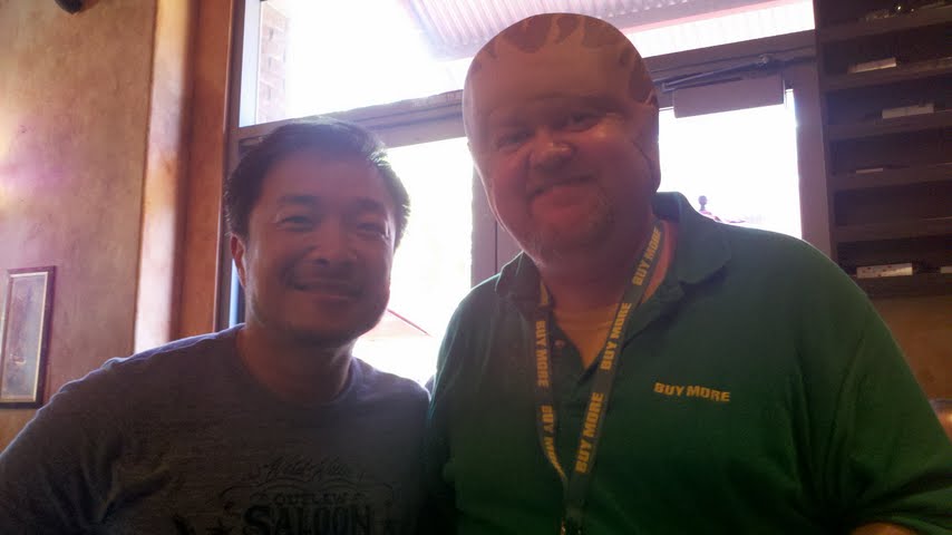 You certainly get noticed in costume and that also means you sometimes get an extra chance at meeting your favorite celebrities and childhood idols. Chuck himself, Zack Levi, said he loved our outfits and stopped to say “I really appreciate that you’re representing both Buy More and the Nerd Herd.” Sweet! Levi was hosting his own offsite mini con of sorts called the Nerd HQ, where you could skip lines and for a $20 donation to the national Smile charity you could meet Zachary Quinto (Star Trek’s Spock, Heroes), the stars of TV’s Psych, or as we did, get to spend an hour with Quantum Leap, Men of a Certain Age and Star Trek Enterprise’s own Captain Archer–Scott Bakula in a small conversational setting of about 100 people (Scott also gave us a thumbs up and signed autographs). Bakula was more down to Earth than you can imagine, talking about the ups and downs of acting and singing an improvised duet with Zack Levi onstage.