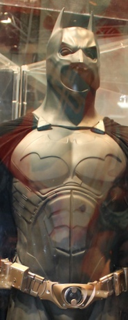 With the in-production next Batman sequel in the works, The Dark Knight Rises (see yesterday’s article announcing Anne Hathaway’s new Catwoman suit), relevant screen-used costumes were displayed in cases inside the DC Comics area. Three major DC movie characters from The Dark Knight watched over the convention floor. One of Christian Bale’s Batman suits showed off its stunning detail: