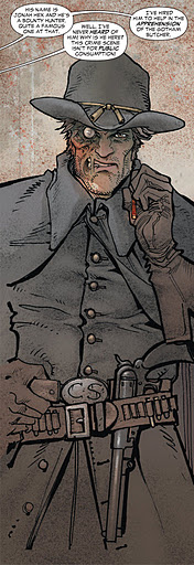 The reason Hex stumbled into Gotham City, the hunt to collect the bounty on three members of the Trapp gang, cause Hex to head out of town in issue three. A successful conclusion to their first mission, and Arkham coming out of his shell a bit, results in Hex being asked to join the police force (he refuses). Arkham is allowed to build a hospital to study the mind. But that all comes apart before it begins. Hex survives another attack, rescues, Arkham, and returns to his original pursuit.