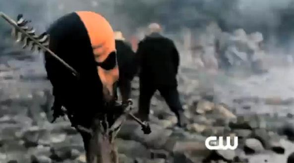 Kelly Hu will be guest starring in next week’s episode as the DC villain, China White, first appearing in the 2007 mini-series Green Arrow: Year One. As I had speculated this past February here, the writers at acknowledged at Comic-Con relying heavily on the modern origin story in Green Arrow: Year One, illustrated by the artist known as Jock. Not a classic Green Arrow story by any means, it did seem to serve as backdrop for at least the pilot episode. Deathstroke was disclosed as another villain we can look for in the series. The writers advised watching each episode for “Easter eggs,” like this Deathstroke mask found in the pilot: