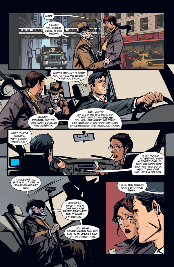 The Strain is available for pre-ordering now at a discount price from Amazon.com and will be available at comic book stores and other outlets November 14, 2012. The complete release of The Strain in graphic novel form will be divided into three parts, reflecting the three novels in the original trilogy. Volume 2 of The Strain will be released in August 2013. Part two, called The Fall, will be released in 2013 with the final part, The Night Eternal, released in 2014, presumably in two volumes each. The Strain story continues monthly from Dark Horse Comics, available at all comic book stores. The original three novels by del Toro and Hogan are available in bookstores at Amazon.com for those who want to check out the source material. The Strain will also be a new TV series coming in 2013 from FX, and del Toro has said he hopes to direct as many episodes personally as his film schedule permits.