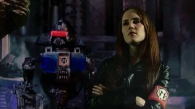 Taking place in the distant future where Hell triumphs over good, the cyberpunk/technopunk world of Manborg follows a soldier, played by Matthew Kennedy, fighting for good in one of the war’s early battles, who is blown away by the ruling Count and brought back years later as a borg by a scientist in order to save humanity at humanity’s last stand. At first Manborg is uncertain of his abilities with his Swiss Army-folding weaponry. He is joined by three other warriors, a wacky, illiterate and cocky Australian named Justice (Conor Sweeney) who can’t read the word “Grenades” on the side of a box, Justice’s sister Mina (real-life sibling Meredith Sweeney) who seems to be 1970s judo-inspired wielder of sharp objects mixed with live-action anime warrior, and an Asian martial arts master called Number One Man (Ludwig Lee) who clearly speaks his dialogue in English but is dubbed with an overtly stilted Euro-English accent as a throwback to old martial arts movies. Each gets his/her own key fight scenes and clichéd but funny tough guy talk.
