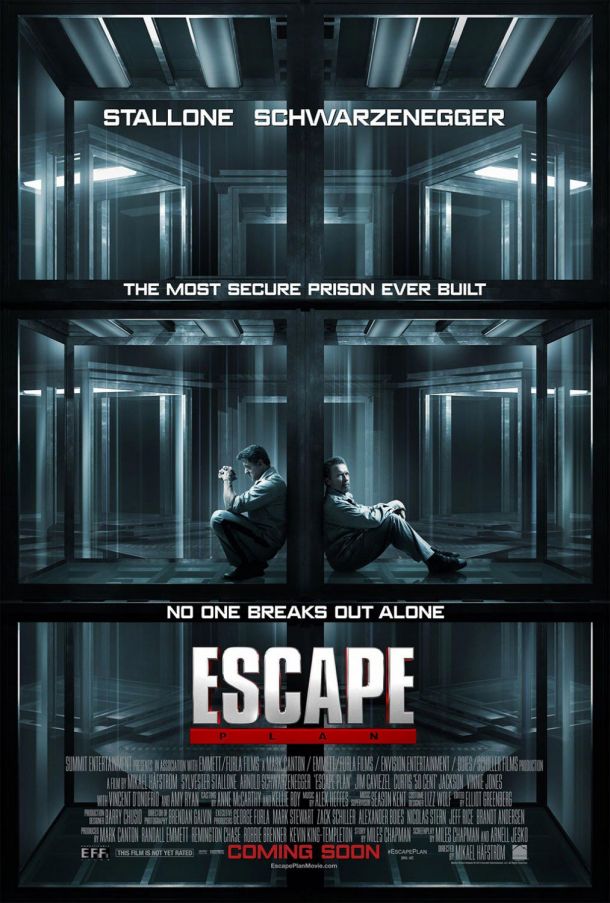 Tailor-made for fans of The Expendables series, Sylvester Stallone and Arnold Schwarzenegger are teaming-up yet again, this time in an action movie that has the look and feel of Stallone’s earlier team-up with Kurt Russell back in 1989 in Tango & Cash. Tango & Cash had Stallone and Russell playing two cops who get framed and must survive in jail with the criminals they put there. In the new Summit Entertainment release Escape Plan, Stallone plays a security expert who gets framed and lands in prison where he meets up with Schwarzenegger, an inmate who helps him devise a plan to escape. And like the earlier entries in the “prison break” genre, movies like The Rock and Escape from Alcatraz, we’re not talking any prison break, but an escape from what is supposed to be the most secure prison on Earth.