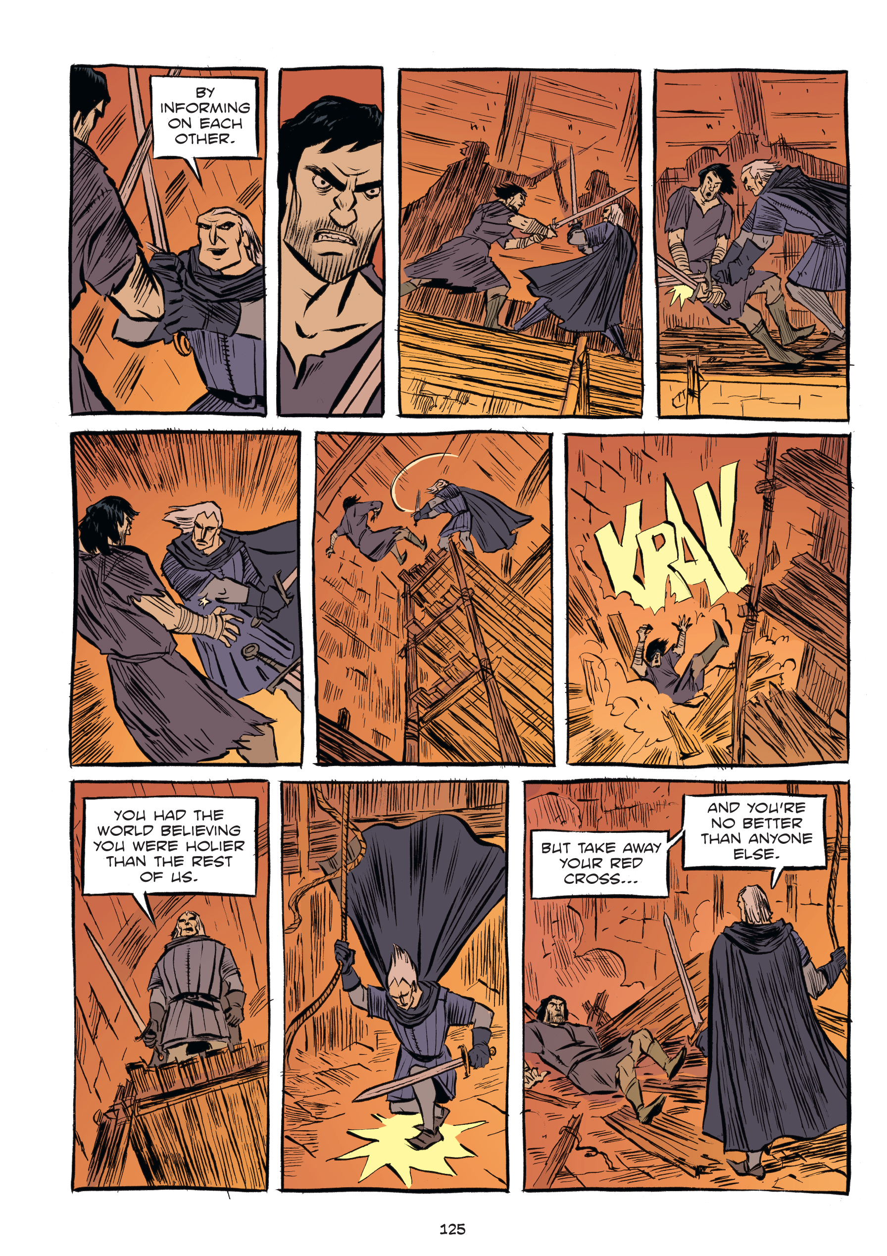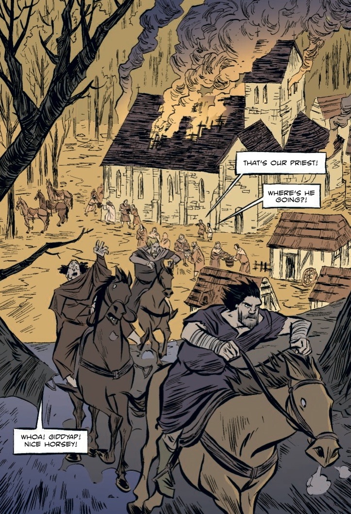 Templar is a quick and easy read–a good introduction to the Knights Templar for adults without the cheesy conspiracy trappings of modern retellings such as found in The Da Vinci Code. The mystique of the Knights Templar still ignite interest in the reader for these noble warriors that we loved seeing best in Indiana Jones and the Last Crusade. Trimming some unnecessary adult dialogue and non-key nude scenes would also make this an ideal introduction for middle grade readers were a separate edition made available. Less historically accurate and more adventure novel than Eric Shanower’s Eisner Award-winning Age of Bronze series that chronicled the world of the ancient Greeks, Templar still includes plenty of elements of real life in the medieval world.