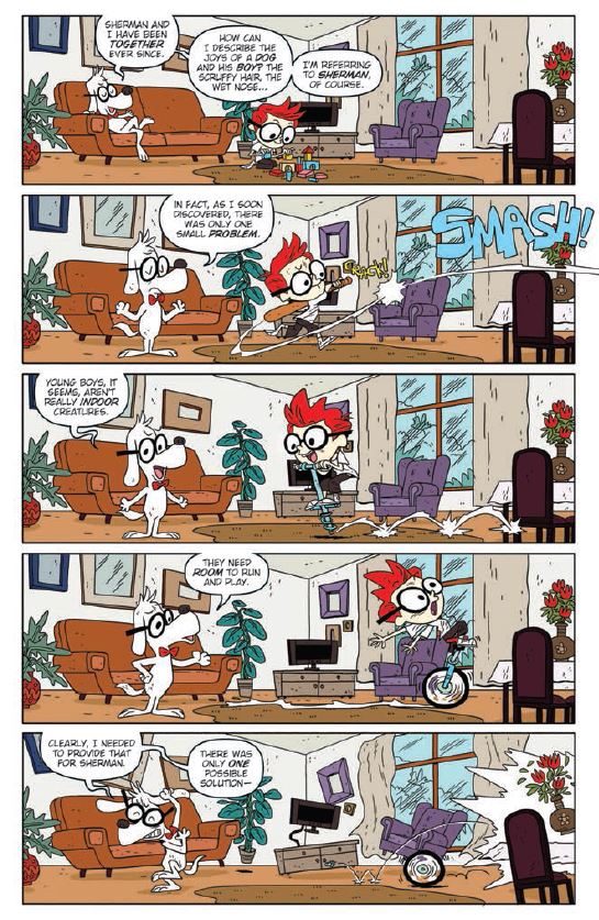 Issue #1 of Mr. Peabody and Sherman, written Sholly Fisch with art and colors by Jorge Monlingo, is funny, appeals to all ages, and captures the spirit and look of the original. Here’s a preview of Issue #1 courtesy of IDW Publishing, now in comic book stores everywhere: