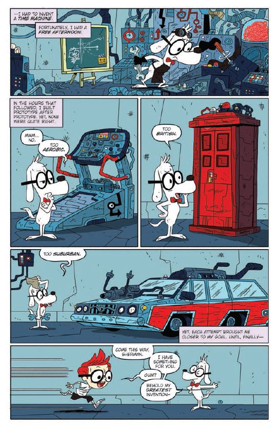 Much more so than we can tell from previews of the coming DreamWorks film Mr. Peabody and Sherman, which we previewed earlier at borg.com here, a new monthly comic book series based on Jay Ward’s classic animated series has all the heart that made the original loved by millions. Mr. Peabody is the genius dog, of course, who takes his boy Sherman back and forth across time like Doctor Who and his TARDIS or Doc Brown and his DeLorean.