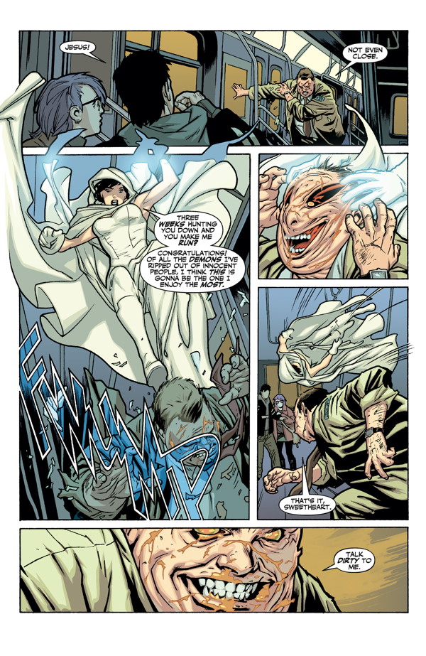 Elisa is back with her two male investigator friends as she tries to learn more about her past, before she became part of the spirit world. Dr. October will return to the series, too. DeConnick wastes no time plunging Elisa into battle with the demon world. Will she reclaim her memory? DeConnick creates an easy-going story that will allow readers old and new easy access to the three main characters, mixing the light-hearted with the dramatic.