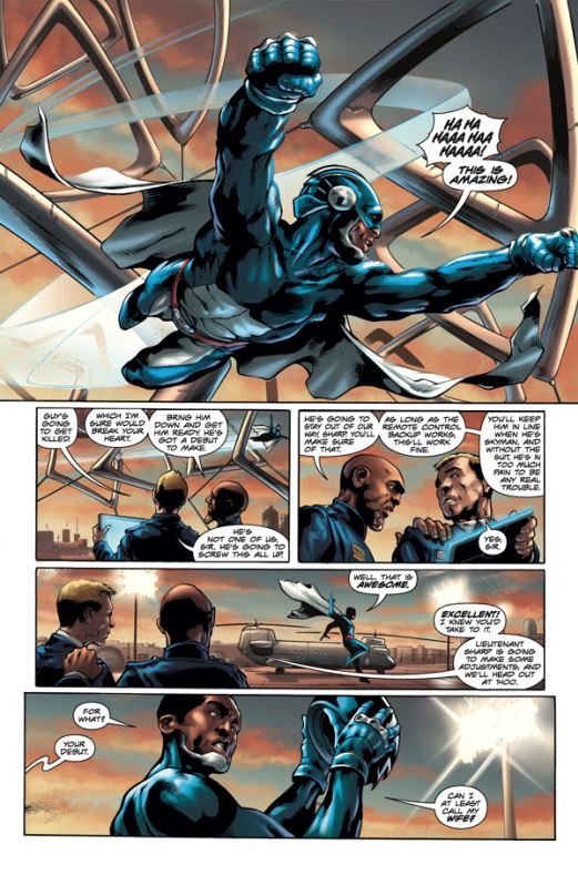 Skyman first appeared in the pages of Captain Midnight #4 in October 2013.