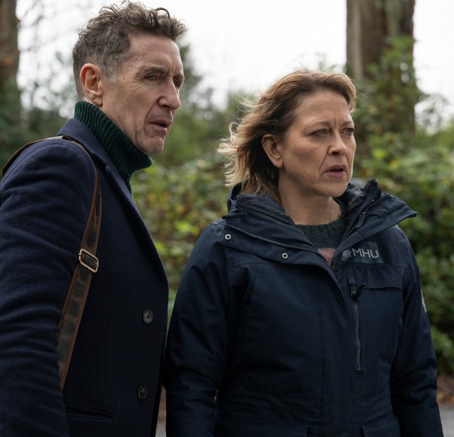 D.S. Tyrone Clarke (Ukweli Roach) winds up his run on the show as the other outsider on the squad, replaced by DC Harper Weston, played by Varada Sethu (Andor, Jurassic World Dominion), a motorcycle-riding force to be reckoned with. Prometheus, Game of Thrones, Star Wars: The Last Jedi, and Shetland’s Kate Dickie returns as the supportive boss, DCI Diane Oban. But the best guest character of the season is Annika’s Nordic, sad Santa Claus father, played by Sven Henriksen.